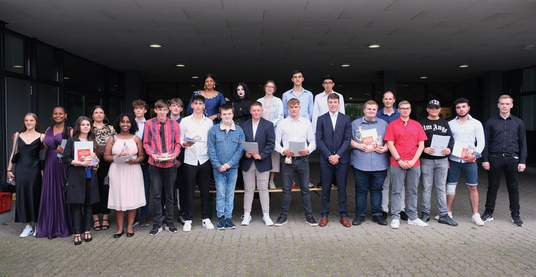 Sie hatten es nicht leicht in ihrem letzten Schuljahr, das geprägt war von Distanzunterricht und Präsenzunterricht in geteilten Klassen. Damit einher ging die gesteigerte Anforderung an ein eigenständiges Lernen und Wiederholen als Vorbereitung auf die finalen Hauptschul- und Realschulprüfungen. Aber auch auf die Ereignisse, die Schülerinnen und Schülern noch lange nach ihrer Schulzeit besonders in Erinnerung bleiben – Abschlussfahrten, Praktika, Ausflüge – mussten sie schweren Herzens verzichten. „Ihr werdet in die Geschichte eingehen als der Abschlussjahrgang, der es trotz Corona geschafft hat“, betont Schulsprecherin Larah Timm anerkennend in ihrer Rede. ,,Ihr könnt also definitiv stolz sein, euren Abschluss 2021 nun geschafft zu haben.“ Das können sie durchaus, denn sowohl Noten als auch Anzahl der Abschlüsse liegen mit drei Berufsorientierten Abschlüssen, elf Hauptschulabschlüssen, 26 Qualifizierenden Hauptschulabschlüssen, 22 Realschulabschlüssen und 44 Qualifizierenden Realschulabschlüssen, die zum Besuch einer gymnasialen Oberstufe berechtigen, im Durchschnittsbereich der letzten Jahre.