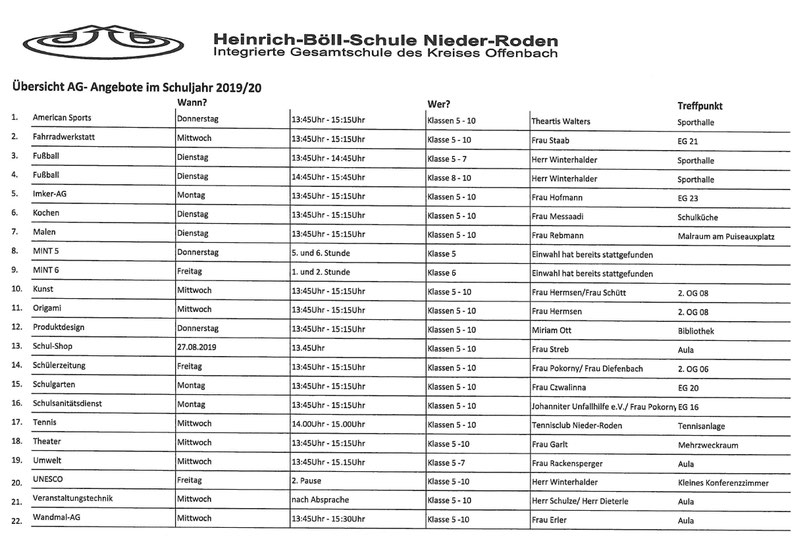 ... die meisten AGs beginnen am 17. August, einige erst später. Bitte beachtet die Starttage im AG-Heft (PDF).