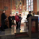 Im Kerzenschein zogen Schüler von Herrn Dieterle mit selbstbemalten Kerzengläsern durch die dunkle Kirche zum Altar. Pfarrer Hartmann eröffnete den Gottesdienst und las später das Evangelium vor. Herr Niedziella begrüßte alle Anwesenden im Namen der Fachschaft. Herr Schoberth las den Psalm: „Der Herr ist mein Hirte!“ Schülerinnen und Schüler aus der 10. und 8. Klasse trugen Vergebungsbitten und Fürbitten vor. Des Weiteren wurden Lieder wie: „Oh du fröhliche..“ oder „We wish you a merry Christmas!“ gemeinsam gesungen und von Frau Brechtel, Herrn Schulze und Herrn Steiner instrumental begleitet. Höhepunkt war wohl das Video, welches der Religionskurs aus der 5. Klasse von Frau Diefenbach gedreht hatte. Ein modernes Krippenspiel, in dem man unterhaltsam sehen konnte, dass es in früheren Zeiten auch Probleme gab, aber durch Einsatz, Zuversicht und Gottvertrauen die Dinge sich zum Guten wenden lassen.