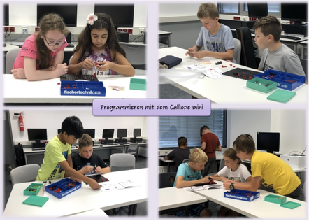 Im letzten Jahr startete dann ein Probelauf in MINT mit den Calliope Mini, programmierbaren Mikrocontrollern. Dafür konnten die Geräte glücklicherweise im Klassensatz vom Medienzentrum in Offenbach geliehen werden. Die MINT-Schüler der 5. Klasse waren so begeistert und wissbegierig bei der Sache, dass die für den Informatikbereich in MINT zuständige Lehrerin sich noch vor den Sommerferien um Sponsoren bemühte. Zu Beginn der Ferien erhielt die Schule dann die positive Nachricht: die Firma Bechtle erklärte sich bereit nicht nur die Calliope Mini, sondern sogar noch zusätzliche Baukästen von Fischertechnik voll zu finanzieren. Somit konnten alle Materialien noch in den Ferien organisiert werden und direkt mit Schulbeginn das Programmieren mit den nun schuleigenen Geräten und den Baukästen beginnen. So werden von nun an auch Ampelschaltungen, Handtrockner und Bahnschranken an der HBS gebaut und programmiert. Mittlerweile konnte man im Computerraum schon Gefühle von Verzweiflung bis hin zu Glückseligkeit erleben. Aber wenn man erst eine halbe Ewigkeit Fehlersuche betreibt und dann doch endlich das Problem und schließlich noch die Lösung dafür findet - dann ist die Freude darüber umso größer!