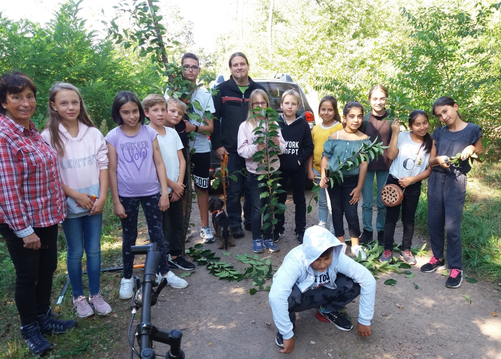 Zu Beginn dieses Schuljahres führte die Umwelt-AG der HBS die Pflege der 20 Wildapfelbäume durch, die sie im Frühjahr gemeinsam mit dem Förster gepflanzt hatten. Schnellwachsende Traubenkirschen